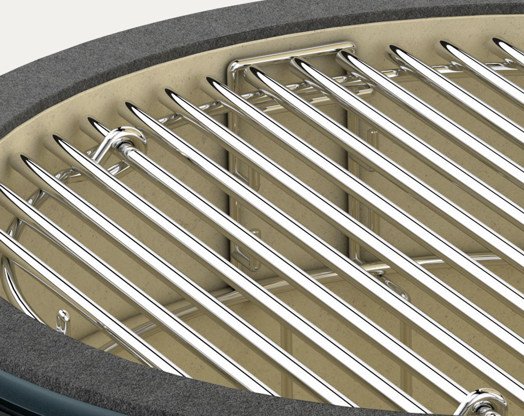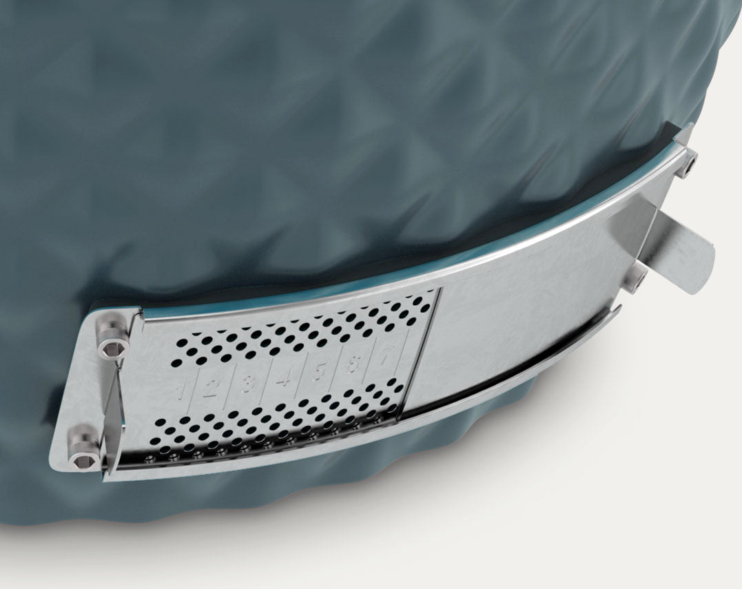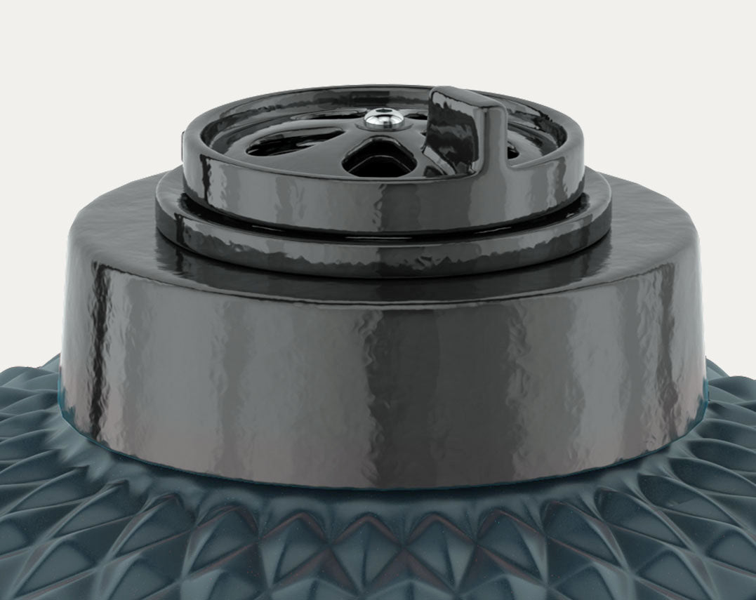 La nouvelle charnière Easy-lift a été conçue pour accompagner le mouvement du couvercle, le rendant plus léger et plus facile à manipuler. Ce système améliore l'ergonomie du kamado, offrant une ouverture et une fermeture plus fluides, tout en réduisant l'effort nécessaire.
